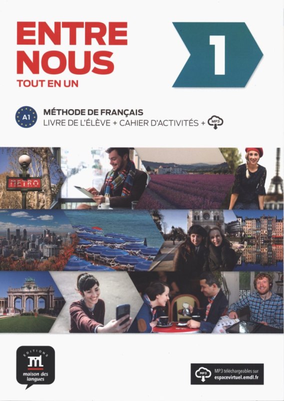 ENTRE NOUS 1 to kurs na poziomie A1 dla młodzieży powyżej 16 roku życia oraz dorosłych uczących się od podstaw lub tzw. fałszywych początkujących (faux-débutants) w szkołach językowych lub na lektoratach w szkołach wyższych.
