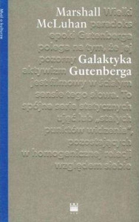 Książka Galaktyka Gutenberga. Tworzenie człowieka druku (1962), ukazująca konsekwencje wynalezienia prasy drukarskiej z ruchomymi czcionkami, weszła na stałe do kanonu literatury traktującej o wzajemnych relacjach kultury, społeczeństwa i mediów. Jej pierwsze pełne polskie wydanie oddajemy właśnie w ręce czytelników.