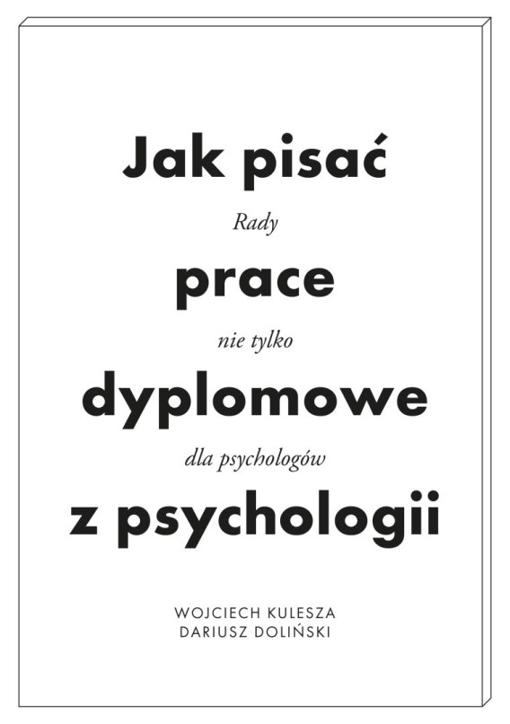 Praca dyplomowa powinna być zrozumiała nie tylko dla autora, lecz także - i przede wszystkim - dla czytelnika. Wojciech Kulesza i Dariusz Doliński piszą, w jaki sposób pracować nad pisaniem pracy dyplomowej, aby to osiągnąć. Jak powiadają: „Łatwo jest pisać trudno. Trudno jest pisać łatwo". I pokazują, jak pisać tekst łatwy dla czytelnika. - Bogdan Wojciszke