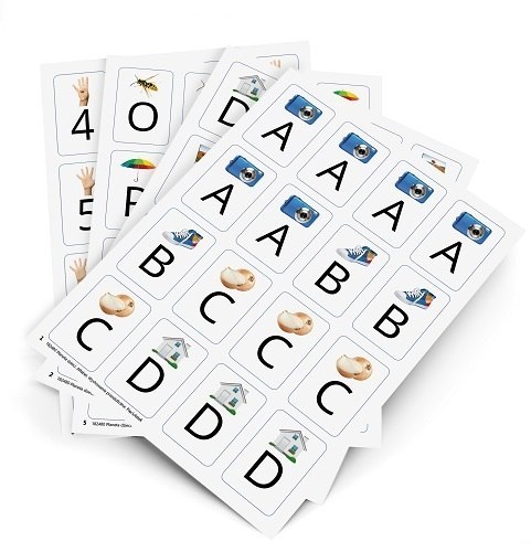 Zestaw kartoników z 24 podstawowymi wielkimi i małymi literami drukowanymi z ilustracjami wyrazów podstawowych oraz 10 liczbami (0-9) z ilustracją aspektu kardynalnego.