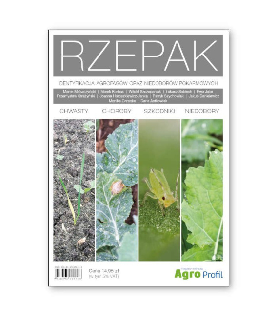 Oprócz agrofagów opisaliśmy także objawy niedoboru składników pokarmowych, na wystąpienie których narażony jest rzepak. Przedstawiamy również sposoby i techniki prowadzenia monitoringu plantacji na obecność agrofagów oraz niedoborów pokarmowych. Publikacja jest obejmuje kompleksowo problemy dotyczące rzepaku ozimego i zawiera fotografie, które pomogą w identyfikowaniu szkodników, chwastów, chorób oraz niedoborów pokarmowych.