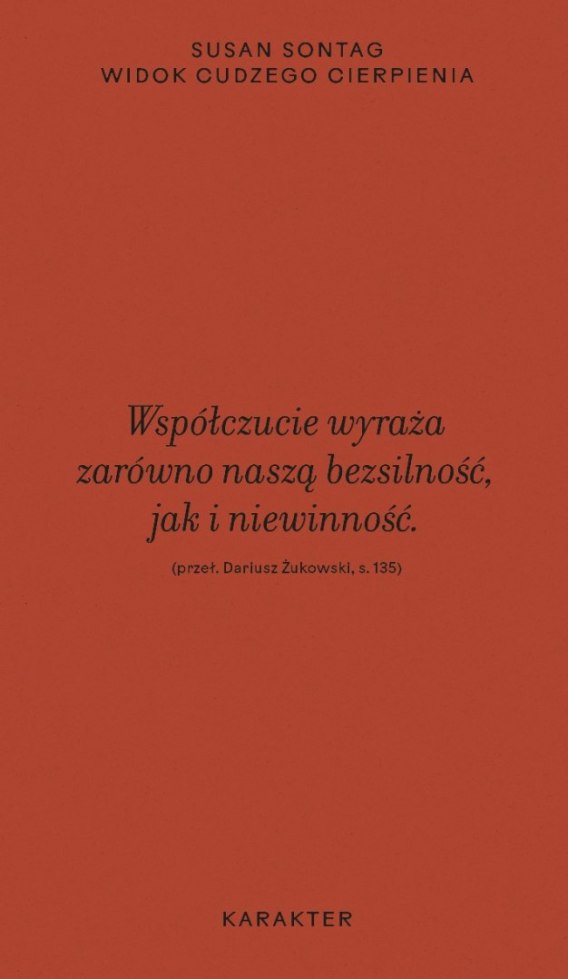 Rozwinięcie i uzupełnienie O fotografii. Autorka powraca do wielu kwestii poruszanych wcześniej, skupiając się jednak na zagadnieniu przedstawiania obrazów cierpienia w mediach, zwłaszcza w fotografii wojennej. Historyczny kontekst, w jakim powstawała książka (niedługo po ataku na World Trade Center), nie pozostał bez wpływu na charakter i temperaturę wywodu. W świecie, w którym codziennie jesteśmy zalewani potokiem obrazów pełnych okrucieństwa, w świecie po ludobójstwie w Rwandzie i po wojnie w byłej Jugosławii, a zarazem w świecie, w którym technika umożliwia prowadzenie wojny na odległość, przedstawianie obrazów cierpienia rodzi nowe pytania i problemy etyczne.