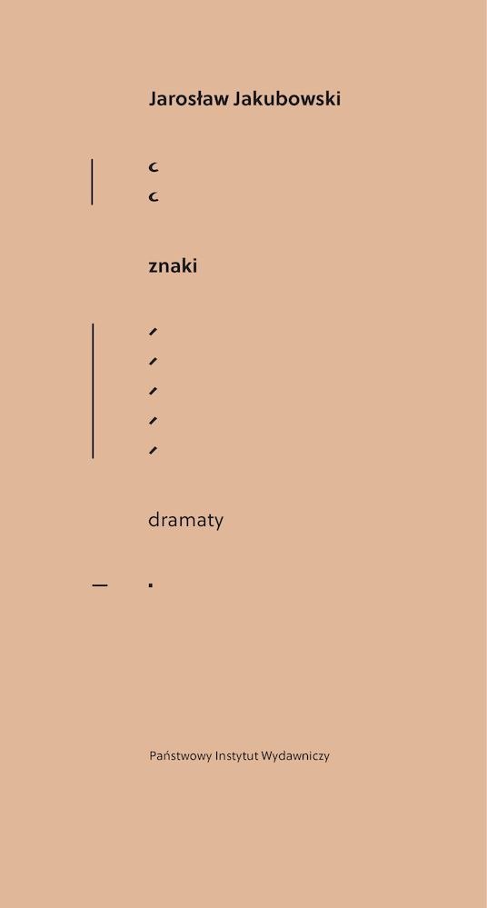 Zbiór ośmiu dramatów Jarosława Jakubowskiego, poety, prozaika, dramatopisarza i krytyka literackiego. Spośród zamieszczonych w tomie "Znaki" dramatów publikacji książkowych doczekały się: Generał, Znaki, Witaj Barabaszu i H, w „żywym teatrze" wystawiono Generała, w Teatrze Telewizji: Generała i Znaki, jako słuchowiska zrealizowano: Generała, Witaj Barabaszu i H. Z kolei utwór Urodziny został zarejestrowany na wideo jako czytanie performatywne. Dramaty: Równina, Moja Romy i Hermaszewski nie były dotąd publikowane i wystawiane.